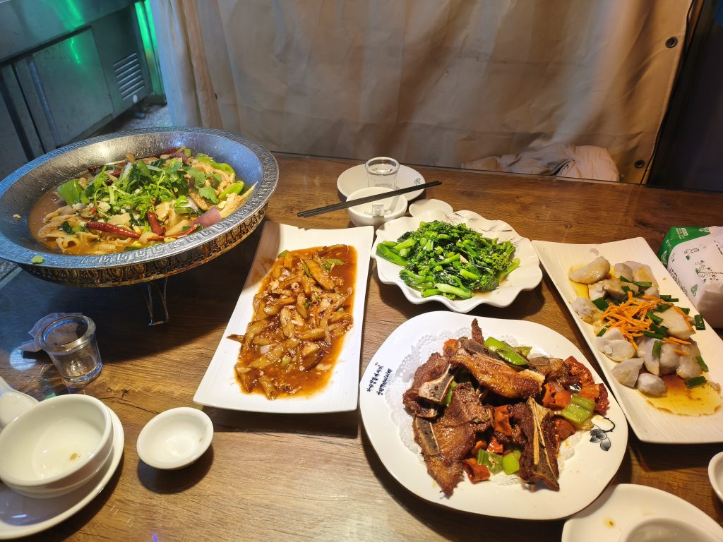 晚上预定了一个家庭套房,只需要三百多块,房间很大,晚上睡得很舒服,每个人都能睡一张床。晚饭是参考了大众点评上面一家高分饭店,结果到了之后只有我们一桌客人,菜倒是很好吃,芋头、羊排、菜心、牛腩、茄子,我爸还去买了一碗牛肉丸,晚餐非常丰盛。晚上在小城里随便逛了一下,我爸说:“你们有没有觉得,在这里好像时间都慢下来了。”我说其实只是发展比我们那边落后罢了。