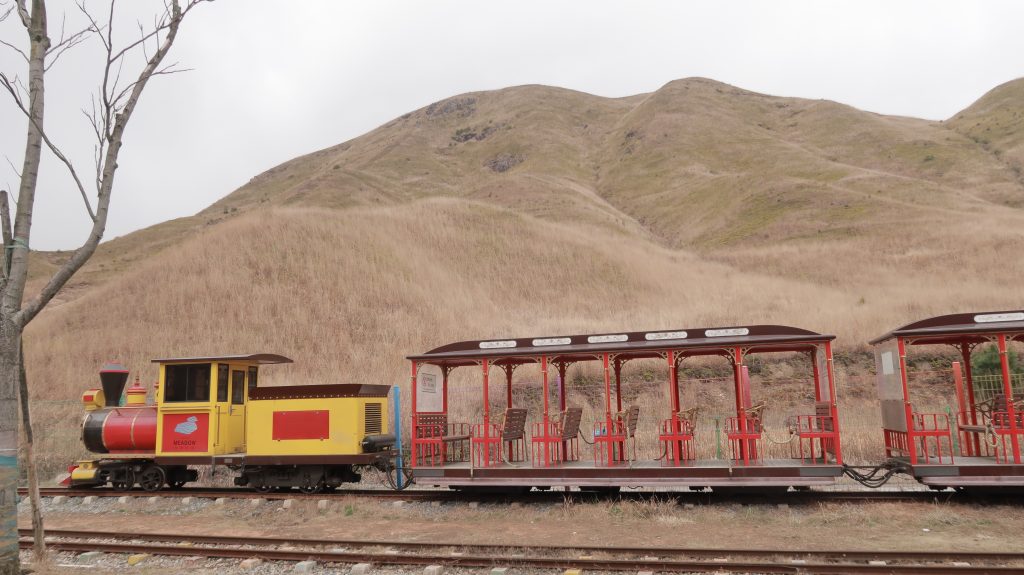 这个漂亮的小火车是夏天才开的,冬天就停在那。卡丁车因为没有人,所以我们也觉得一个人玩没意思,就没去。滑草在入口处,以为后面会有很多好玩的,就没有专门去,现在想想,可能就这个最好玩了。下方这张图是第一个景点,叫烈日红唇,其实就是一个雕塑(?)。我觉得其中有一些设施确实该修理一下了,自动售货机也应该补齐一下。整个景区都需要不停爬山,和我们当时的设想背道而驰了,最后体验非常糟糕,每个人都累到了,又没有觉得很快乐。