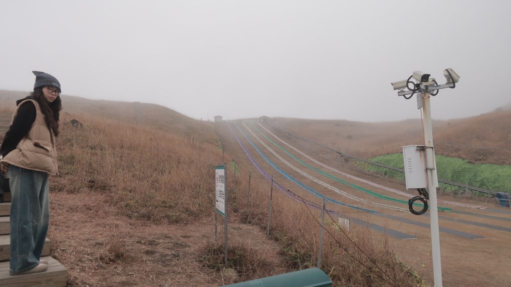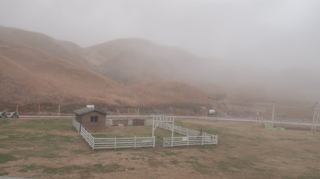 总之,我们来到了鸳鸯草场,在拿到景区导览图的时候我还是很期待的。因为上面标注了很多好玩的东西。可惜进去之后,发现完全不是这么回事。罪魁祸首可能是大雾天气,之前在小红书看到了一些鸳鸯草场的旅行笔记,能够看到山坡上大片大片的草,而我们去的那一天什么都看不见。当时去鸳鸯草场的路上,高速上能见度可能也就200米左右,现在想来真不该在这样的天气去玩。
